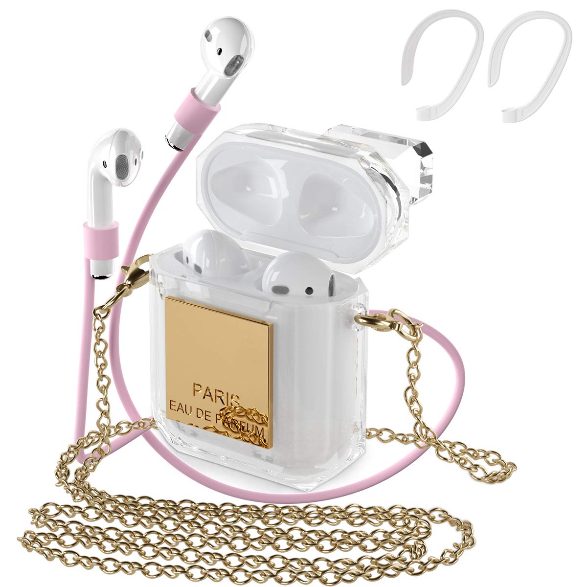 YoungRich Coque de Protection AirPods 1&2,AirPod Case Cute Transparent Mignon Silicone 3D Housse Bouteille de Parfum Étui Antichoc pour Fille Femme,avec chaîne d'or(sans Airpod Case à l'intérieur)