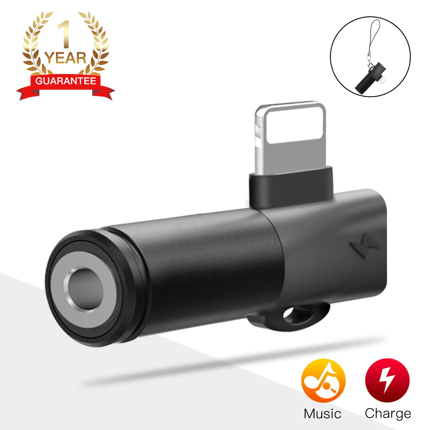 ICHECKEY Adaptateur Jack Compatible avec iPhone 7/7Plus/8/8Plus/XS/11 Audio Splitter 3,5 mm Convertisseur d'adaptateur 2 en 1 Adaptateur Casque [Audio + Recharge]